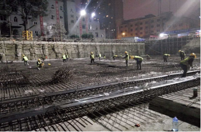 成都位于四川盆地西部的岷江中游地段,地質(zhì)結(jié)構(gòu)復(fù)雜,砂卵石地層居多,中間夾著細(xì)砂層。該項(xiàng)目的地基一半以上經(jīng)過(guò)釬探后都需要把較軟的細(xì)砂層用卵石層換填,這對(duì)施工進(jìn)度造成了較大影響。而且該工程位于金牛區(qū)茶店子橫街,屬于市區(qū)繁華地段,且屬于在原址上改擴(kuò)建工程,師生們還集中在旁邊待建的教學(xué)樓內(nèi)上課。所以,在狹小有限的場(chǎng)地內(nèi),要做到綠色環(huán)保施工,防止噪音擾民是該工程的又一大難點(diǎn)。為了取得周邊居民的理解和支持,項(xiàng)目部在居民區(qū)張貼了安民告示,并積極做好與居民的溝通;部分噪音大的分項(xiàng)工程與學(xué)生上課時(shí)間錯(cuò)峰施工,材料選擇夜間進(jìn)場(chǎng),土方夜間挖運(yùn),每天加班至深夜十一二點(diǎn)。在項(xiàng)目部科學(xué)合理的統(tǒng)籌安排下,既保證了工程的快速推進(jìn),又達(dá)到了和諧、文明施工。