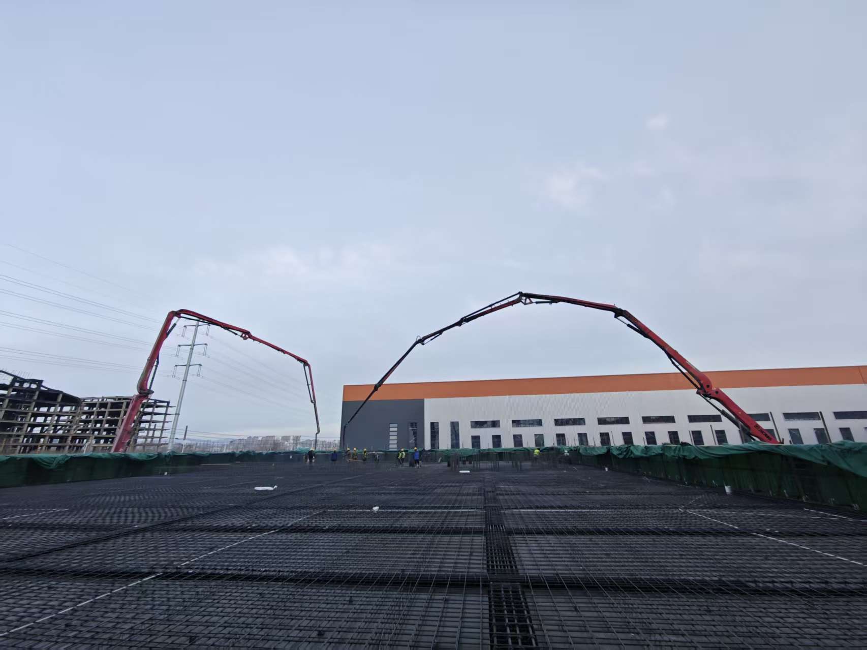 工程于9月17日開工后,面對項目場地受限、大體積筏板基礎(chǔ)混凝土澆筑任務(wù)繁重、車間鋼結(jié)構(gòu)跨度大、有效工期短促等重重挑戰(zhàn),項目團(tuán)隊精心組織施工,合理配置資源,推行策劃先行理念,深化BIM技術(shù)應(yīng)用,實現(xiàn)全專業(yè)建模、圖紙審查與施工指導(dǎo)并聯(lián)協(xié)同。在確保施工安全和質(zhì)量的前提下,項目采取“分區(qū)域施工+動態(tài)調(diào)整+24小時輪班作業(yè)”等施工方法,制定施工路線圖,組織百余名建設(shè)者,突破包頭地區(qū)多雨強風(fēng)與冬季嚴(yán)寒的雙重考驗,僅僅用105天高效優(yōu)質(zhì)完成全部單體工程主體結(jié)構(gòu)施工任務(wù),實現(xiàn)全線封頂目標(biāo)。累計開挖土方171407立方米,回填土方8700立方米,綁扎鋼筋2039噸,澆筑混凝土20700立方米,鋼結(jié)構(gòu)安裝3917噸,工程建設(shè)跑出“二冶速度”,彰顯了駐地央企的責(zé)任擔(dān)當(dāng)和實力。