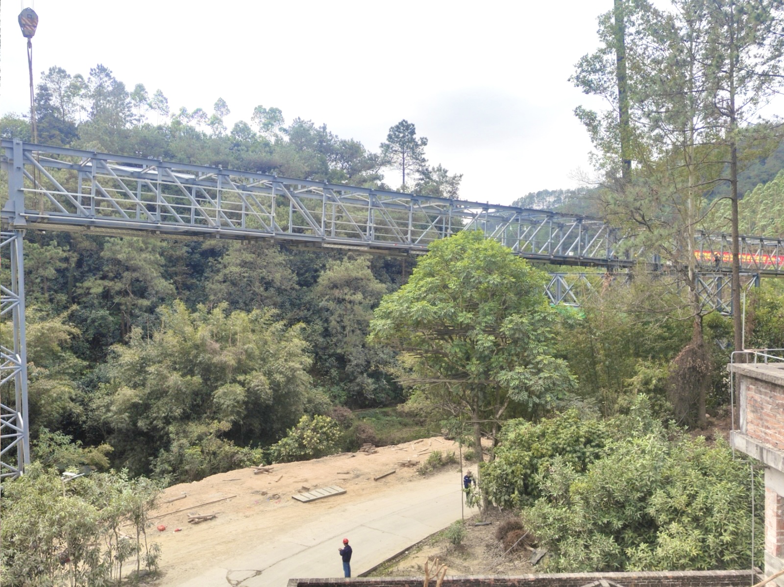 肇慶皮帶連廊項目是當?shù)赝晟啤暗V山-廠區(qū)-港口”聯(lián)動運輸格局的重要配套工程,建成后將實現(xiàn)物料全封閉、低能耗輸送,大幅降低運輸過程中的粉塵污染,契合肇慶打造粵港澳大灣區(qū)西江內(nèi)河航運樞紐中心、推動綠色建材產(chǎn)業(yè)升級的發(fā)展規(guī)劃。其中9#~13#高架作為項目關鍵控制性工程,施工區(qū)域地形復雜,高空作業(yè)多、精度要求高,對施工組織和技術管控提出嚴苛挑戰(zhàn)。
