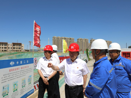 白峰一行首先深入施工現場,聽取了項目負責人關于工程概況、施工進度、現場安全管理及標準化建設等方面的匯報。白峰首先對項目部開展的工作給予了充分肯定,表示中冶德賢公館項目作為公司“二十大重點項目”之一,項目部要以打造包頭本土區(qū)域高端住宅翹楚為建設目標,展現出央企應有的社會責任,以高標準、高質量要求建設精品工程。