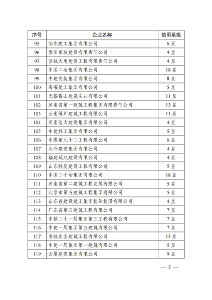 中國(guó)二冶獲評(píng)“工程建設(shè)企業(yè)信用星級(jí)18星級(jí)”