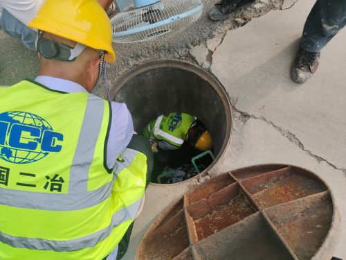 發(fā)現(xiàn)此問題后,項目經(jīng)理盧晨帶領(lǐng)項目部管理人員立即到現(xiàn)場察看情況,并且及時上報建設(shè)單位,同時聯(lián)系溝通市政管養(yǎng)人員,并與施工隊實地查看堵塞原因。因附近村莊建設(shè)時間較早,雨水管、雨水井年久失修,降雨時部分淤泥、砂石和雜草樹葉隨水流沖入管道等,種種原因?qū)е掠晁馈⒂晁s物淤積,排水能力下降。查明原因后,許昌項目部立即研究解決方案,明確施工流程,調(diào)集專業(yè)疏通人員啟動設(shè)備車輛,隨即開始維修,經(jīng)過一周左右的清污疏通、清淤,堵塞雨水管線全部恢復(fù)暢通,共計清理雨水井24個,雨水管11個(長約2000米),徹底解決了村民一大難題。