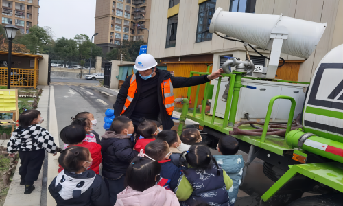 在活動中,幼兒園小朋友們在項目部管理人員的帶領(lǐng)下參觀了灑水車駕駛室、霧炮機(jī)、灑水噴頭等,項目負(fù)責(zé)人圍繞灑水車的功能和作用以及項目概況和目前整體進(jìn)展進(jìn)行詳細(xì)講解,在項目負(fù)責(zé)人的演示下,小朋友們對灑水車的功能和作用,也有了更全面的理解。隨后,幼兒園小朋友在老師的啟發(fā)下暢所欲言,并在展板上畫上了自己心目中車輛。幼兒園老師們紛紛表示,此次活動讓小朋友們深度了解工程車輛的作用和意義,小朋友們第一次近距離地參觀大型車輛,為小朋友的后續(xù)的展開想象提供了幫助。