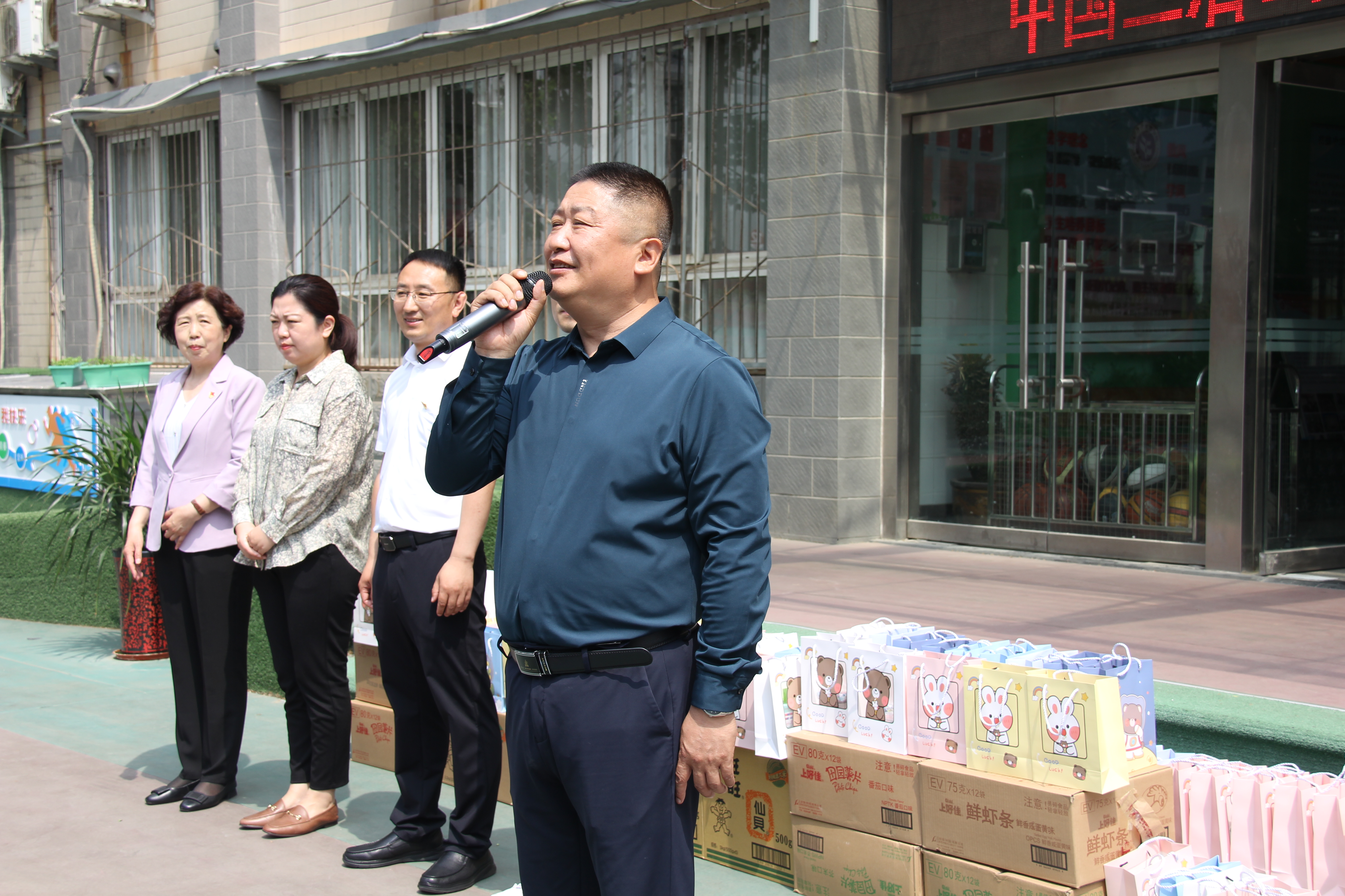 關愛殘障兒童,感受生命熱度。分公司組織開展了兒童節(jié)關愛殘障兒童活動,分公司黨委副書記、紀委書記尹旭與中大槐樹街道辦事處主任、黨工委副書記王潔,裕園社區(qū)黨委書記劉云香帶領分公司職工一同來到裕園社區(qū)特殊兒童學校,與學生們來了一場經(jīng)典的“老鷹捉小雞”親密游戲,游戲中大家歡聲笑語、其樂融融。游戲過后分公司為所有特殊學校學生們準備了益智類小玩具、零食等小禮品。裕園社區(qū)特殊兒童學校校長陳重對分公司的到來表示感謝,通過這樣一點一滴的關心和愛護,讓這里的孩子們都能開心快樂的成長,真正給了這些孩子們一個溫暖的家。