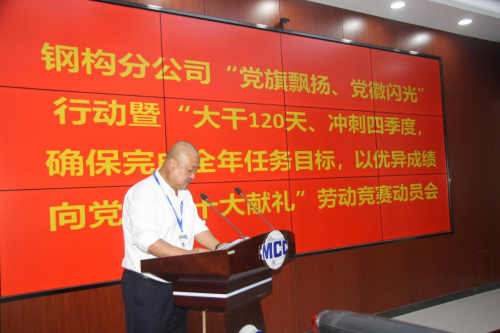 9月15日,鋼構(gòu)分公司黨委召開(kāi)“黨旗飄揚(yáng)、黨徽閃光”行動(dòng)暨“大干120天、沖刺四季度,確保完成全年任務(wù)目標(biāo)以優(yōu)異成績(jī)向黨的二十大獻(xiàn)禮”勞動(dòng)競(jìng)賽動(dòng)員會(huì)。鋼構(gòu)分公司黨委書(shū)記、總經(jīng)理王志義發(fā)表講話,分公司紀(jì)委書(shū)記、副總經(jīng)理田廣林主持會(huì)議。