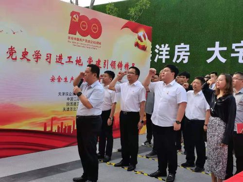 6月23日下午,天津振業津海房地產開發有限公司聯合中國二冶集團冶金分公司天津振業海洋科技園住宅項目、陜西建工集團有限公司及天津市北方建設監理事務所共同舉辦“黨史學習進工地,黨建引領鑄精品”活動,中國二冶集團天津分公司總經理王哲、天津振業海洋科技園住宅項目部經理楊虎及其管理人員、工人代表參加了本次活動。