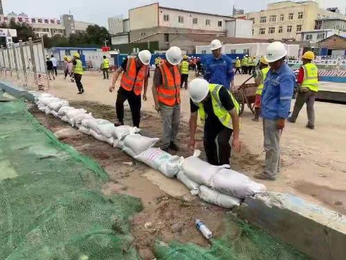 冶金分公司鄭州市鄭東新區如意東路便民服務中心EPC工程項目部積極配合中原公司、業主開展抗洪搶險工作,保證施工現場人員及財產安全。
