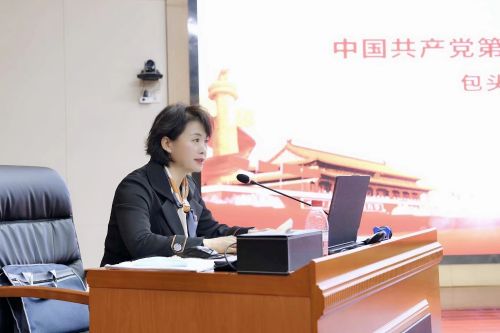 徐俊霞以《永遠跟黨走 奮進新征程》為題,圍繞參會情況、深入學習貫徹黨的二十大精神、深入踐行黨的二十大精神三方面的內容進行專題宣講,宣講結合實際、深入淺出,內涵豐富,思想深刻,全面系統(tǒng)地解讀了黨的二十大精神。徐俊霞在宣講中指出,黨的二十大主題,明確宣示了我們黨在新征程上舉什么旗、走什么路、以什么樣的精神狀態(tài)、朝著什么樣的目標繼續(xù)前進的重大問題。我們要繼續(xù)深刻領悟“兩個確立”的決定性意義,增強“四個意識”、堅定“四個自信”、做到“兩個維護”,自覺在思想上政治上行動上同以習近平同志為核心的黨中央保持高度一致,振奮精神、調優(yōu)狀態(tài)、凝聚力量、把對包頭的摯愛轉化為擔當作為、干事創(chuàng)業(yè)的激情,爭當包頭發(fā)展的參與者、促進者、推動者,讓黨的二十大精神在包頭落地生根,結出豐碩的果實,共同完成好習近平總書記交給內蒙古的五大任務的“包頭答卷”,為全面建設社會主義現(xiàn)代化國家,全面推進中華民族偉大復興作出包頭貢獻。